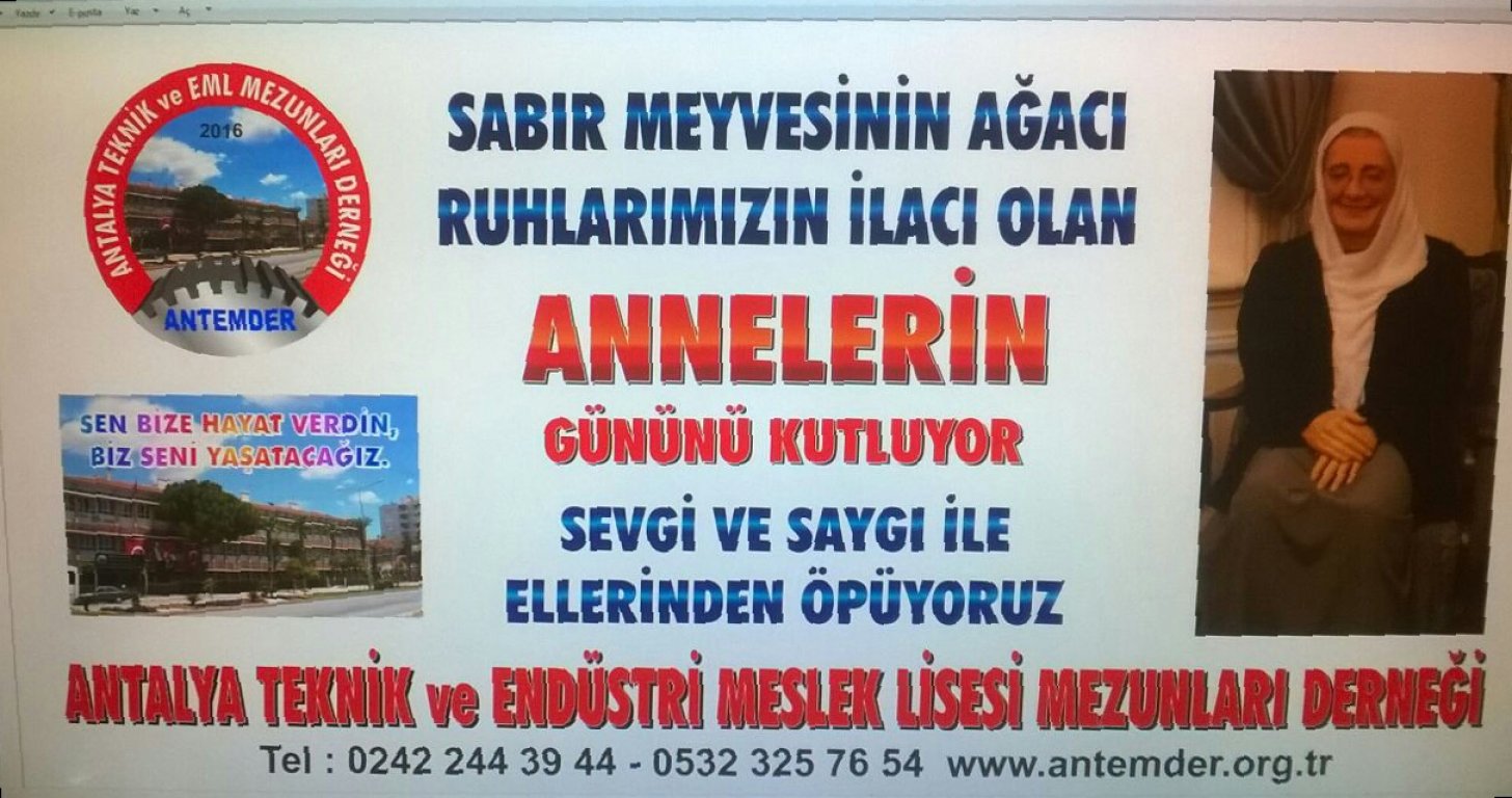 Okulumuz mezunu ve Derneğimiz üyesi Antalya Milletvekili Çetin Osman BUDAK Ankara da olması nedeniyle gönderdiği telgrafla Katılan Annelerin Gününü de kutlayarak başarı dileklerini ilettiler.