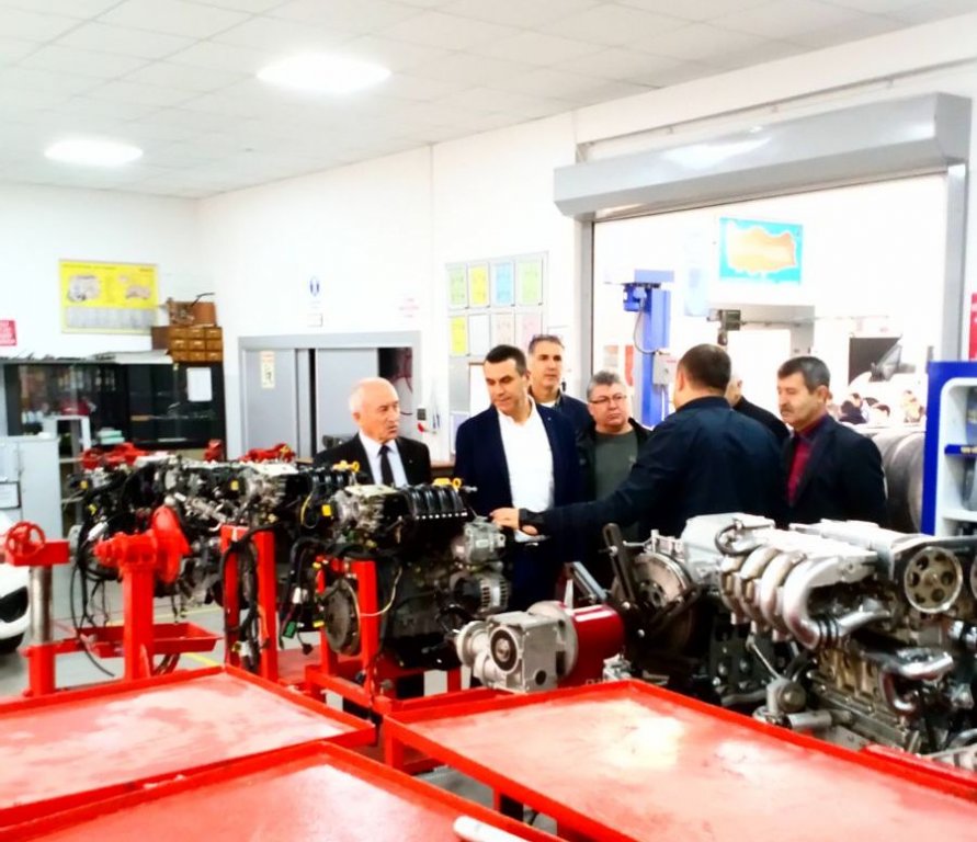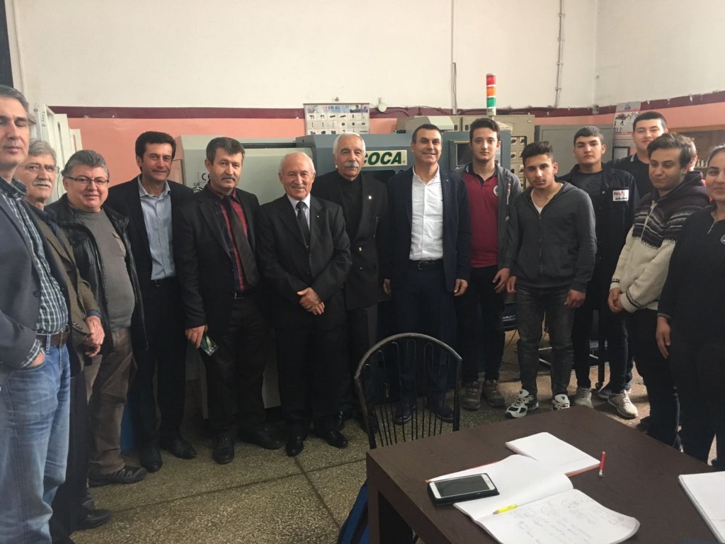 Konuşmasının sonunda Dernek Sekreteri mezunumuz Elektronik Y. Mühendisi İbrahim KÜCÜ tarafından çerçeveli Okul fotoğrafı hediye edilen sayın Erdaoğan daha sonra öğrenciliğinin geçtiği atelyeleri ziyaret etti.