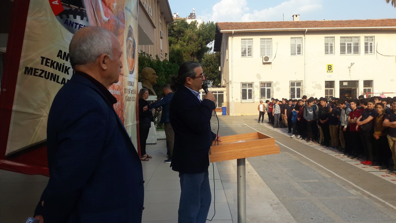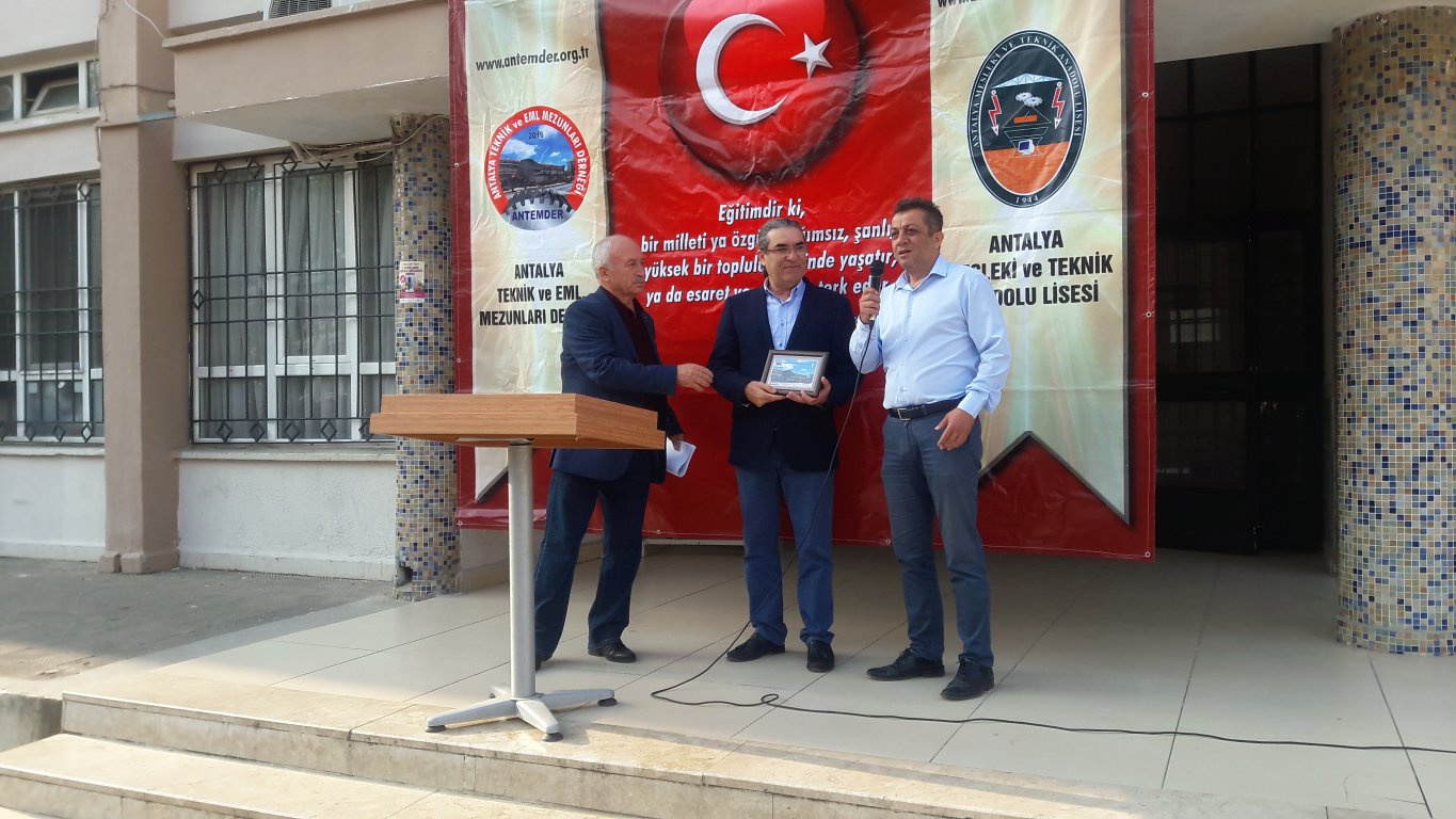 Aynı zaman da ANTEMDER denetim kurulu üyesi olan sayın KARAMAN'a konuşmasının sonunda, Müdür Yardımcılarımızdan Şevket AYDIN tarafından derneğin çerçeveli okul fotoğrafı hediye edildi. Okuldaşımıza teşekkür ediyor, desteklerinin devamını diliyoruz.
