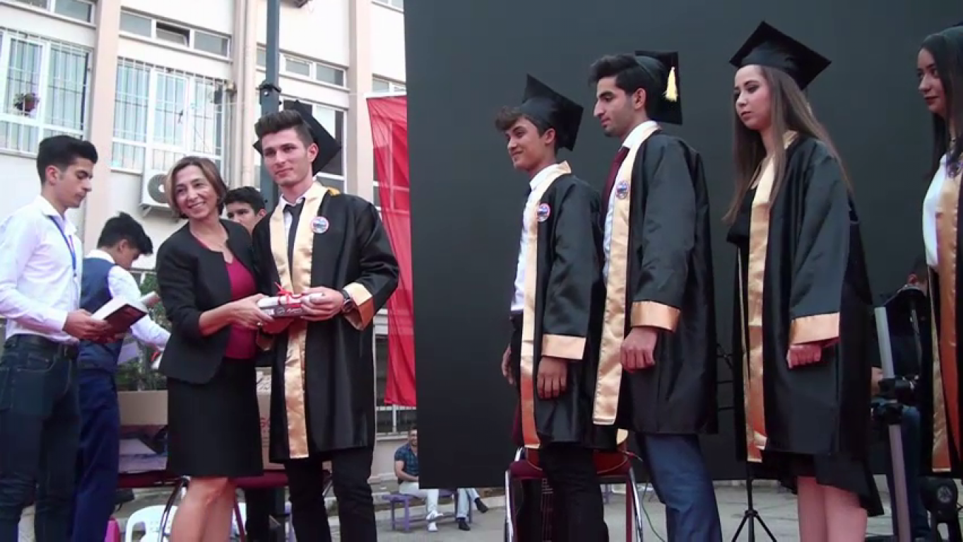 Cübbe giyen öğrenciler, tek sıra halinde sahneye çıkarak Müdür, Başkan, Öğretmenleri, Dernek Üyeleri ve Konukların elinden Diploma suretleriyle, Muratpaşa Belediye Başkanı Sayın Av. Ümit UYSAL'ın hediyesi NUTUK aldılar.