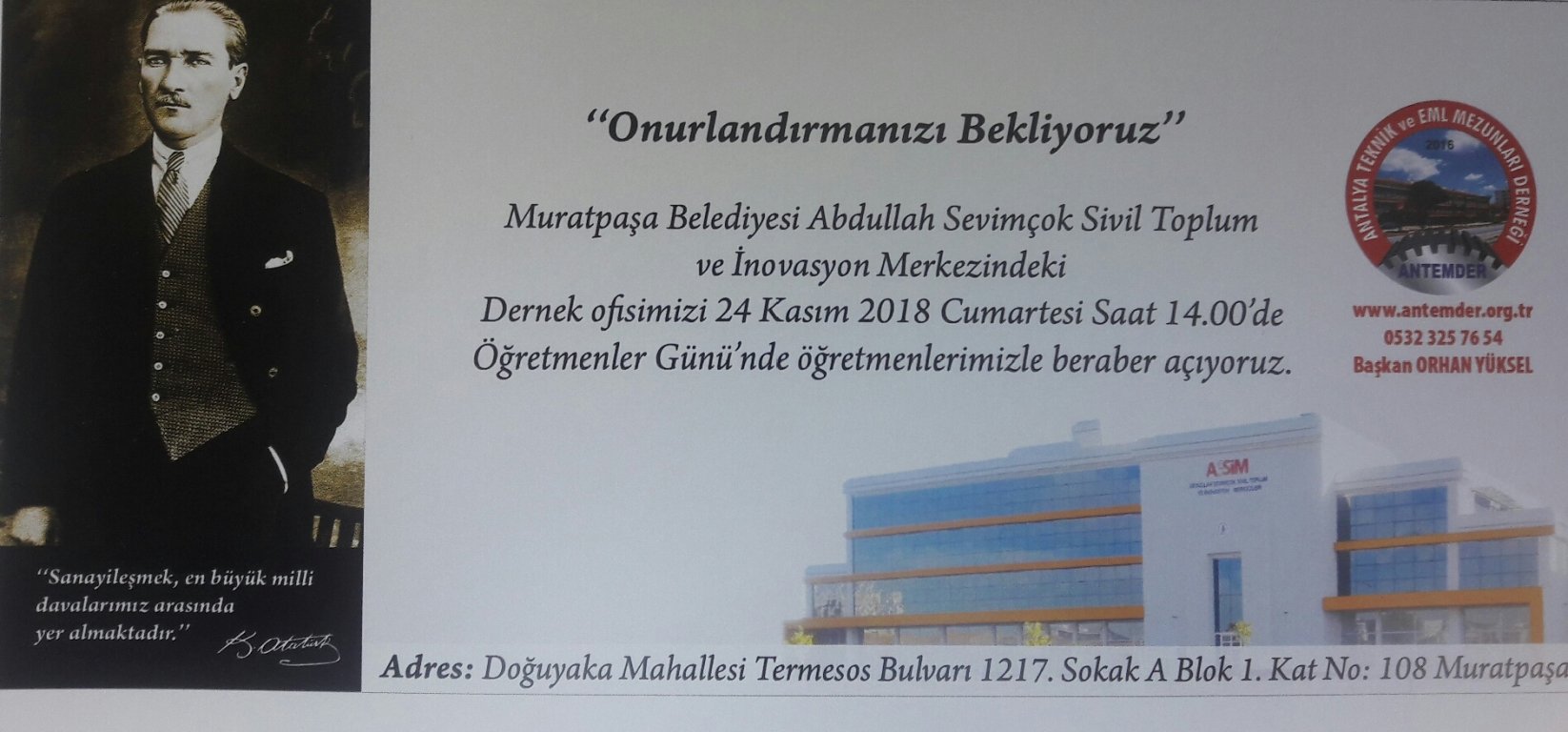 24 Kasım 2018 Cumartesi Öğretmenler günü Saat 14.00 de Öğretmenlerimiz le birlikte açılacaktır.