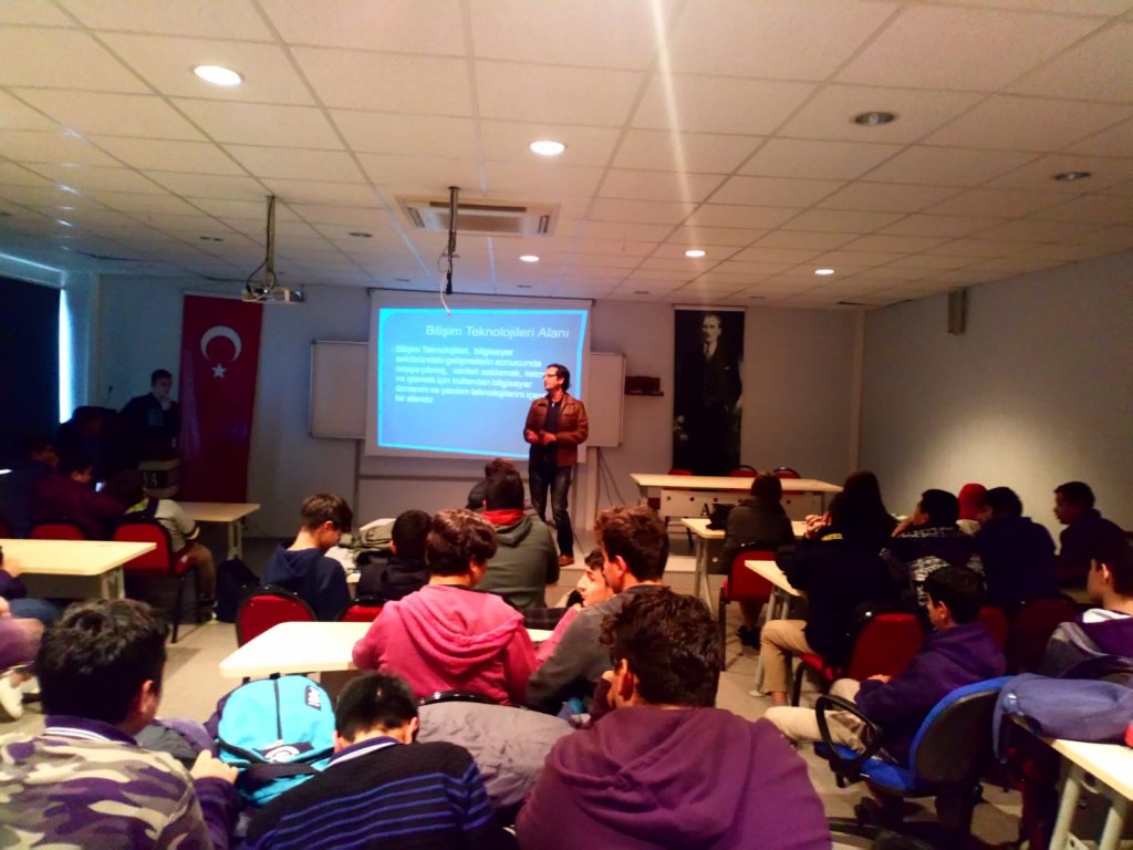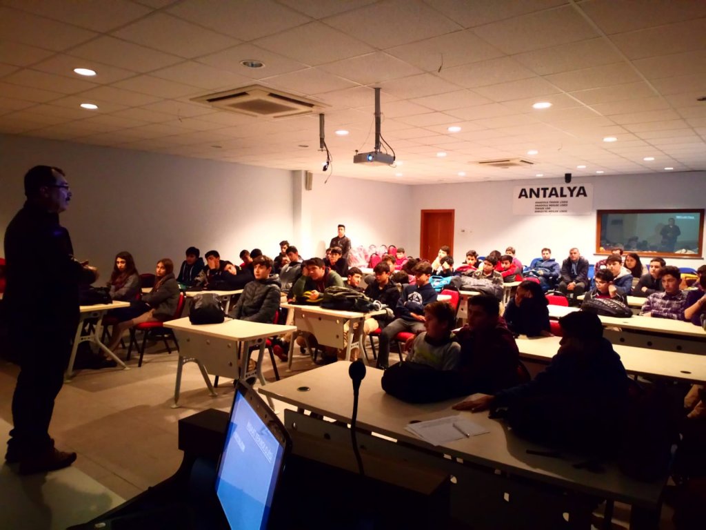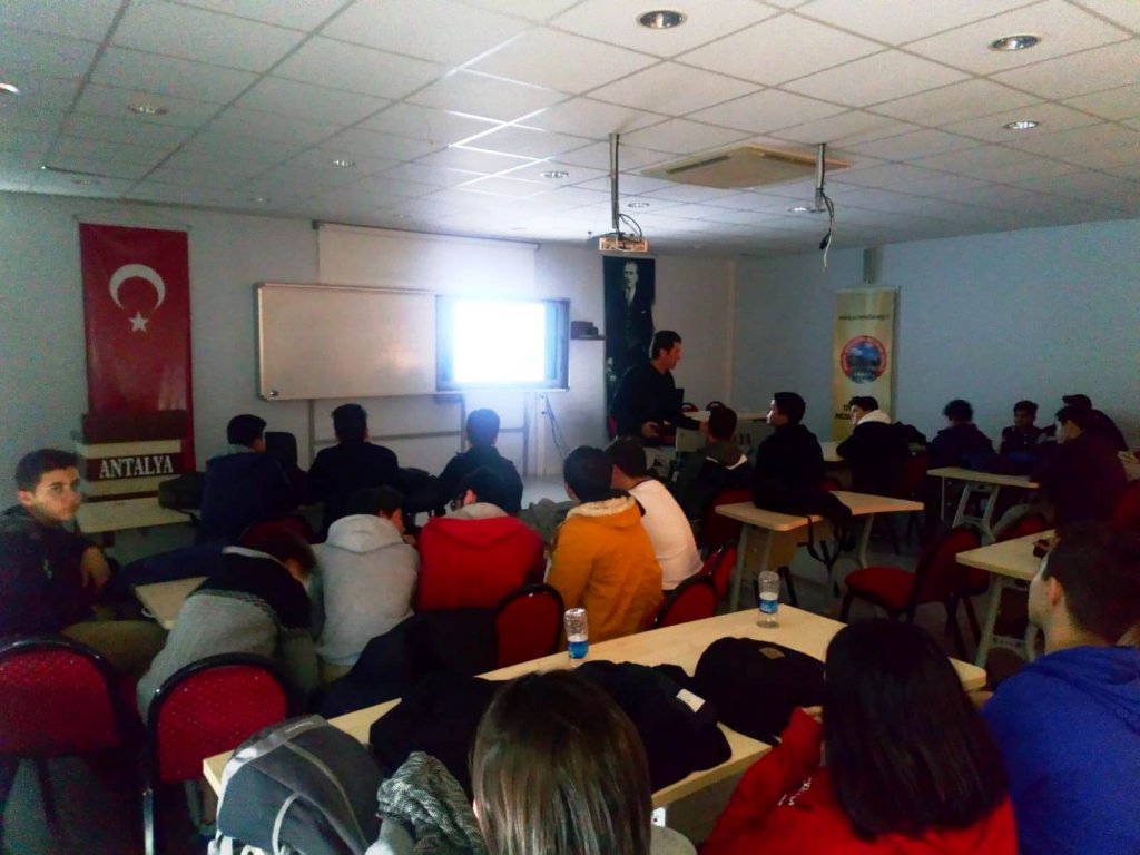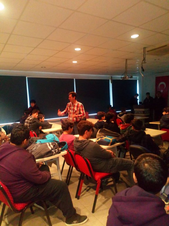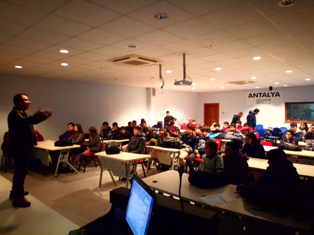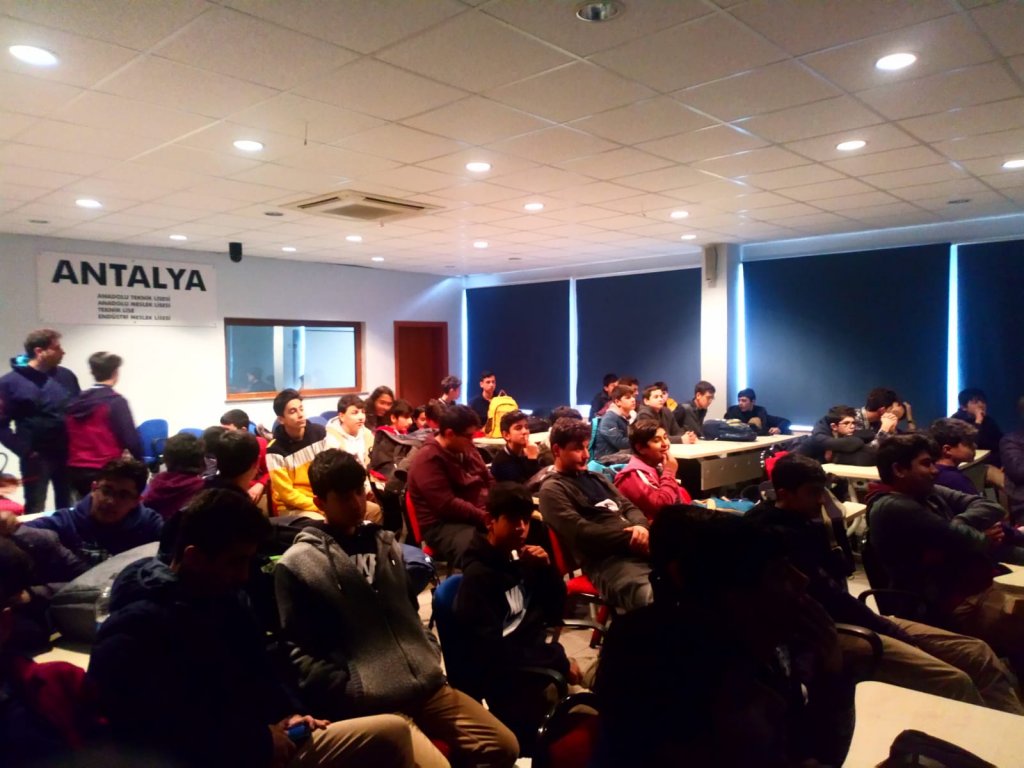 Okul müdürlüğümüzün planlaması ile Müdür Yardımcımız Elekt. Müh. Dudu YILDIZGÖRER ''in koordinesinde, Okulumuz Alan Şefleri ve ANTEMDER adına Başkan Yardımcımız Y.Elektronik Mühendisi İbrahim KÜCÜ'nün katılımı ile tüm 9. sınıflara Okulumuz Konferans Salonunda Meslekler/ alanlar tanıtılmaktadır.