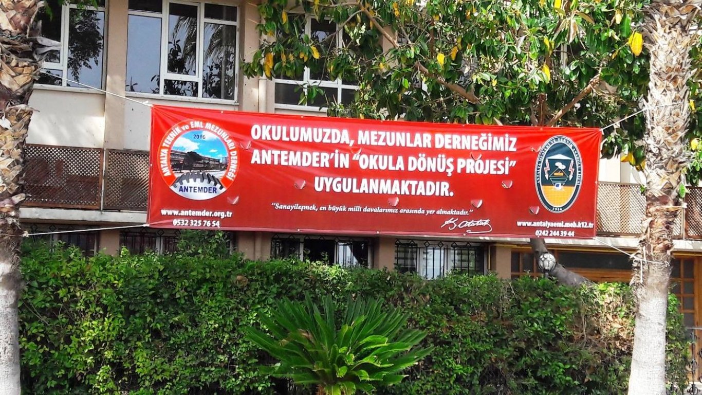 2016 yılında Kurulan Mezunlar Derneğimiz ANTEMDER, Okul bazında geliştirdiği ve Eğitim sistemine model olarak sunduğu “Okula Dönüş Projesi” kapsamında örnek çalışmalar yaparak okulda eğitim kalitesinin artırılmasına destek olmaya devam etmekte, İlimizde Mesleki Teknik Eğitimin Geliştirilmesine de katkı sağlamaktadır.