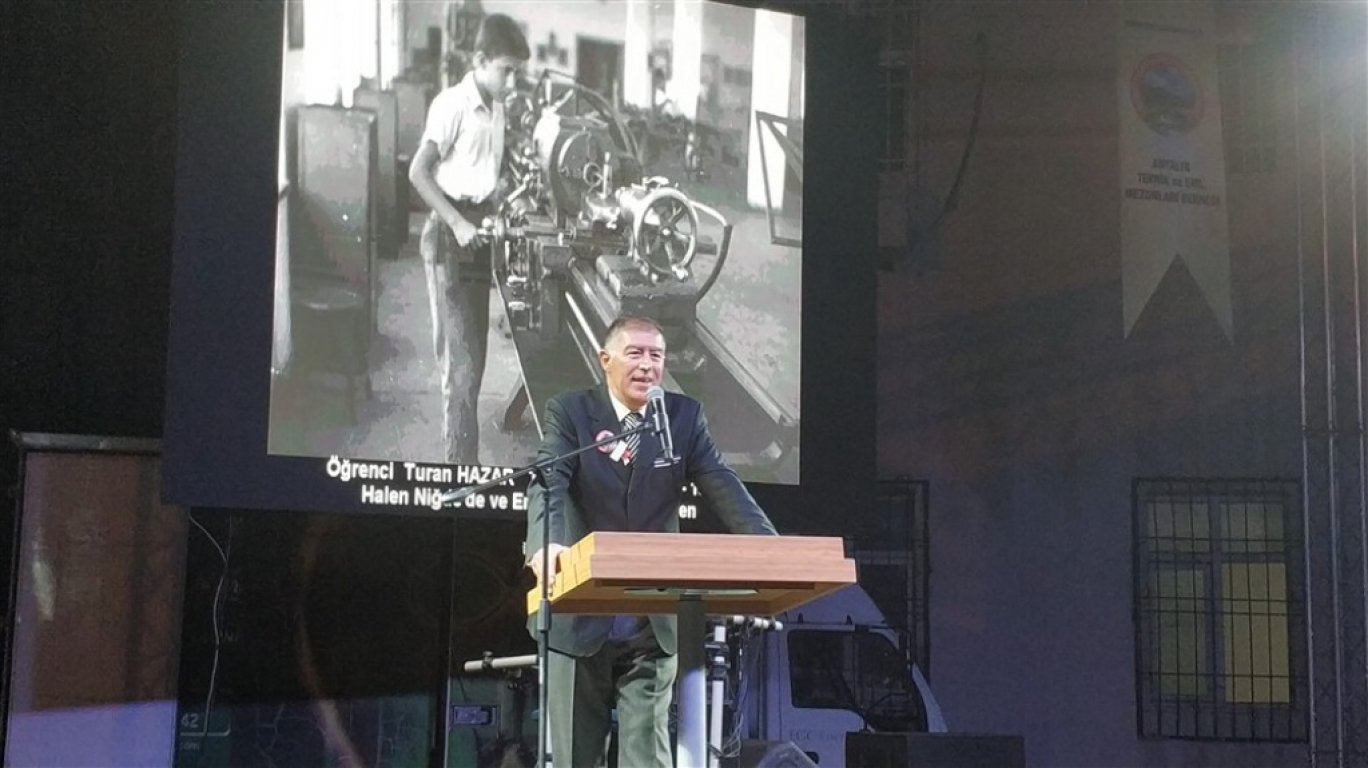 Okulumuzun açılışını teşrifleriyle onurlandıran Sayın Kepez Belediye Başkanımız Hakan Tütüncü, Okulumuzun 75'inci yılını kutlayarak, 'Ne mutlu buraya gelenlere, hatıralarını tazeleyenlere, birlikte gönül gönüle geçmiş günlerin güzelliğini hatırlayanlara. Endüstri Meslek Lisesine, bu güzel okula, öğrencilerine nice aydınlık yarınlar diliyorum. Öğrencilerimize başarılar, elleri öpülesi öğretmenlerimize saygılarımı sunuyorum. Ebediyete intikal eden büyüklerimize Allahtan rahmet diliyorum' diyerek okulumuzla ilgili övgü dolu konuşma gerçekleştirdi. Kendilerine okulumuz adına teşriflerinden dolayı teşekkür ediyoruz.