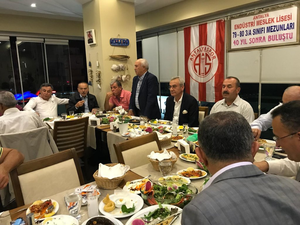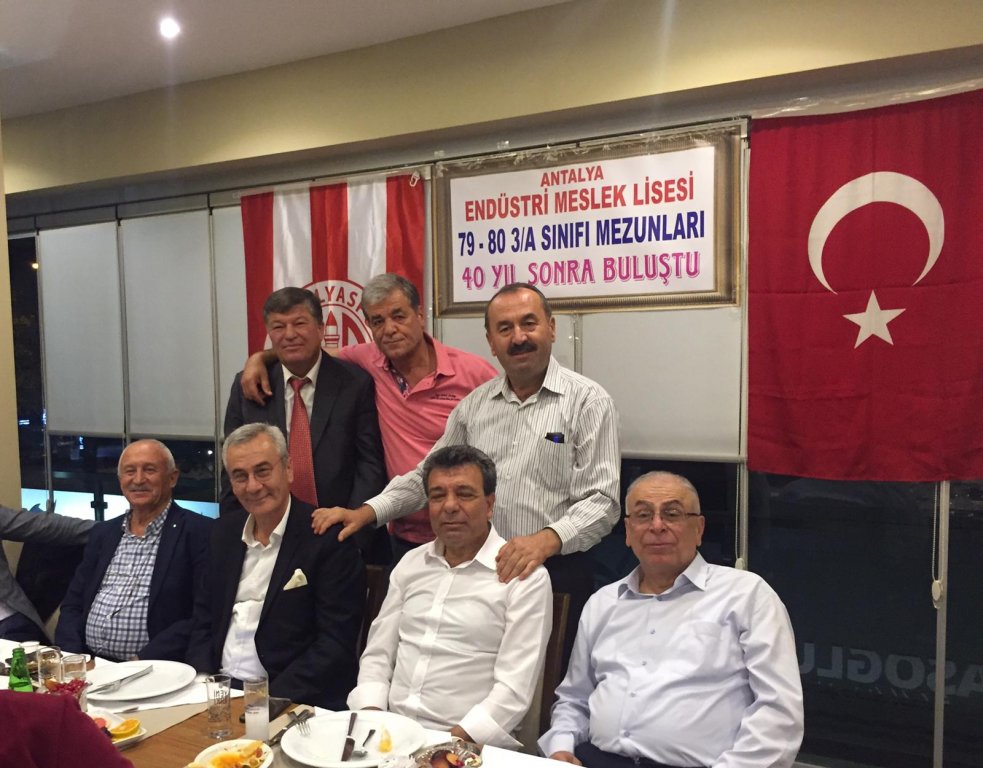 Okulumuzun 1979 - 1980 dönemi 3 A Sınıfı Makina /Tesfiye Bölümü mezunları 13 kasım 2019 Çarşamba akşamı Konyaaltı BAŞOĞLU BALIK restoranda bir araya geldiler.