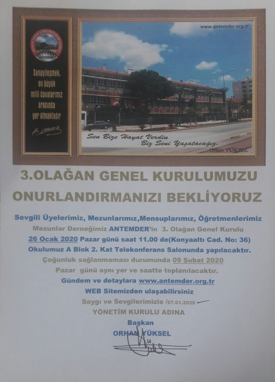 ANTEMDER'in 3. OLAĞAN GENEL KURULUNU İLAN EDİYOR,