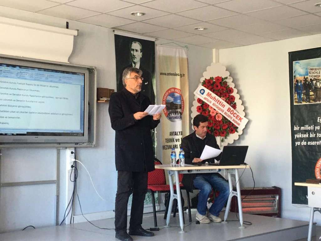 Çoğunluk sağlanamadığı için 26 Ocakta toplanamayan Genel Kurulumuz ilan doğrultusunda 09 ŞUBAT 2020 Pazar Günü Saat 11.00 de toplanarak Gündemini görüştü. Toplantıya 22 üye ile henüz üye olmayan mezunlarımızdan 7 kişi de katılarak destek verdiler. Muratpaşa Belediyesi Adına Başkan Yardımcısı M.Taylan DİKMENîn katıldığı toplantıda Sayın Dikmen'eOkulumuzun Çerçeveli Fotoğrafı hediye edildi. Büyükşehir B:B:Üyemiz Muhittin BÖCEK, Muratpaşa Belediye Başkanı Onursal Üyemiz Ümit UYSAL, Konyaaltı B.Başkanı Semih ESEN ve Kepez B.Başkanı Hakan TÜTÜNCÜ de gönderdikleri çiçeklerle temsil edildiler. Antalya Milletvekilleri Telgraf göndererek kutladılar. Toplantıda Derneğe en fazla bağış yapan üyemiz ve Emekli Fen Bilgisi Öğretmenimiz Havva ÇAKMAK'a da okulun fotoğtafı hediye edildi. Başkan Orhan YÜKSEL'in sunduğu detaylı faaliyet roporumuza ve Funda ÖREK tarafından okunan Denetim Kurulu raporumuz a WEB Sitemiz Yönetimden kısmından ulaşabilirsiniz.