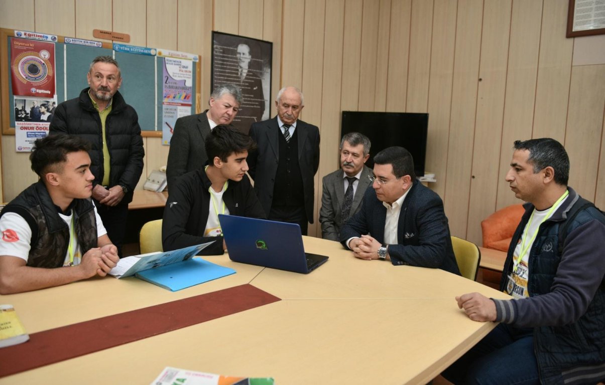Öğrencilerimizin taşıt ve ekonomi bağlantılı geliştirdikleri bir projeyi de bilgisayar ekranından izledikten sonra; "Belediyemizin bilim merkezinin sponsorluk yapabileceğini" belirterek, ilgili birimle bizzat görüşüp öğrencilerimizi yönlendirdiler.