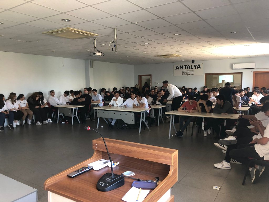 Okulumuz Telekonferans salonunda Antemder başkanı Orhan YÜKSEL'in protokol ve işbirliği hakkında öğrencilerimizi bilgilendirmesinin ardından, 7 Mayıs Salı saat 10.00 - 11.00 arası okulda olan 6 şubemiz öğrencilerine, 9 Mayıs Perşembe günü de aynı saatlerde 4 şubemizin öğrencilerine bilgilendirici sunumlar paylaştılar. Öğrencilerimizin sorularının cevaplandırılmasından sonra program sonlandırıldı.